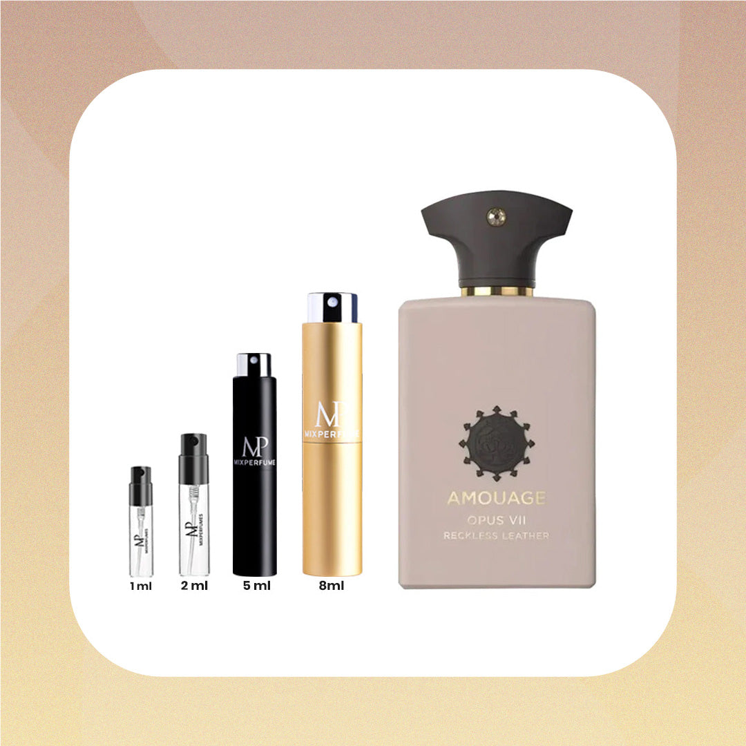 The Library Collection Opus VII Reckless Leather by Amouage is a Leather fragrance for women and men. This is a new fragrance. The Library Collection Opus VII Reckless Leather was launched in 2022. The Library Collection Opus VII Reckless Leather was created by Alberto Morillas and Pierre Negrin. Top notes are Galbanum, Fenugreek, Cardamom, Nutmeg and Pink Pepper; middle notes are Agarwood (Oud), Leather, Ambroxan, Ambergris and Patchouli; base notes are Cypriol Oil or Nagarmotha, Olibanum, Sandalwood, Costus and Musk.