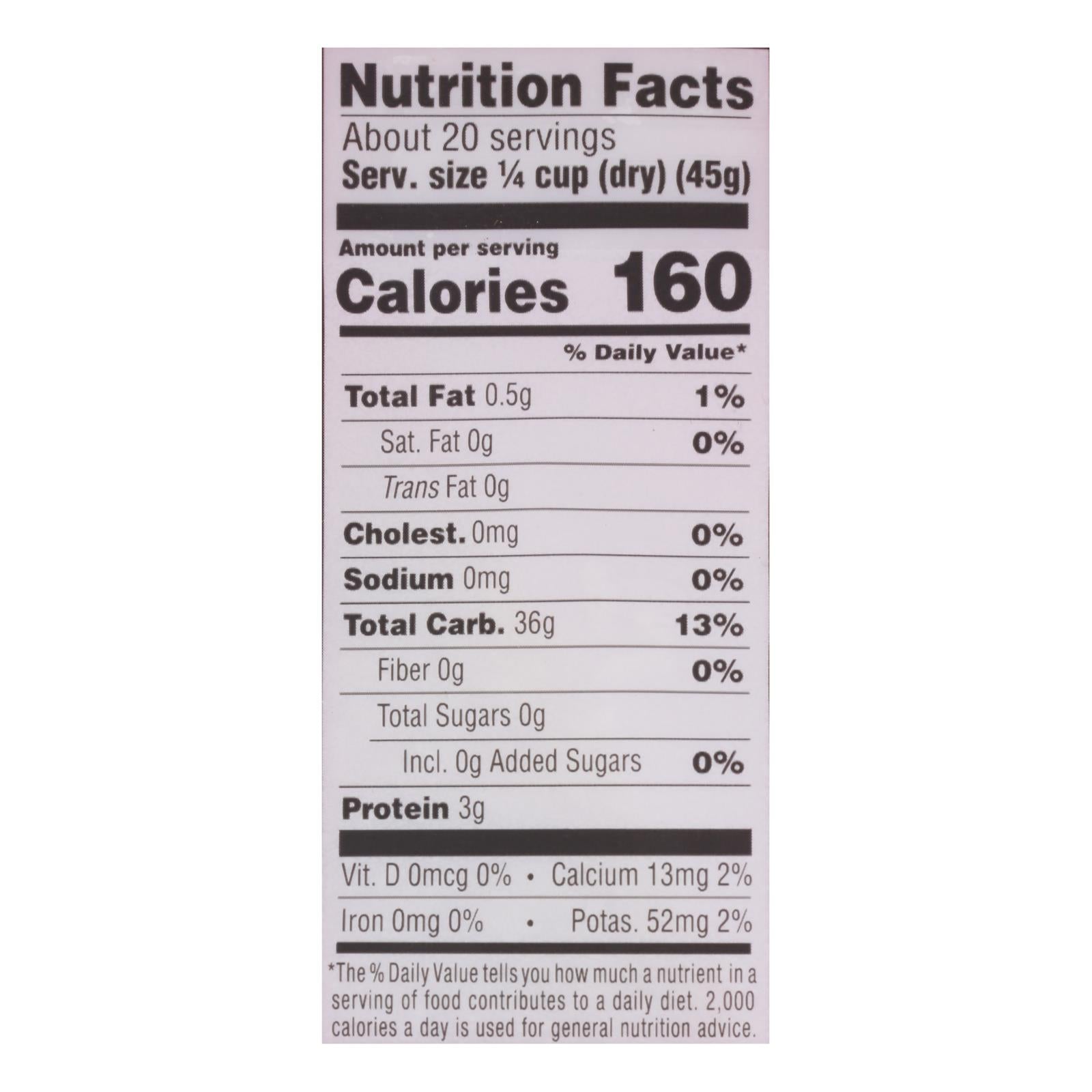 • Packaged conveniently in six 2 lb. bags, each containing 20 servings.