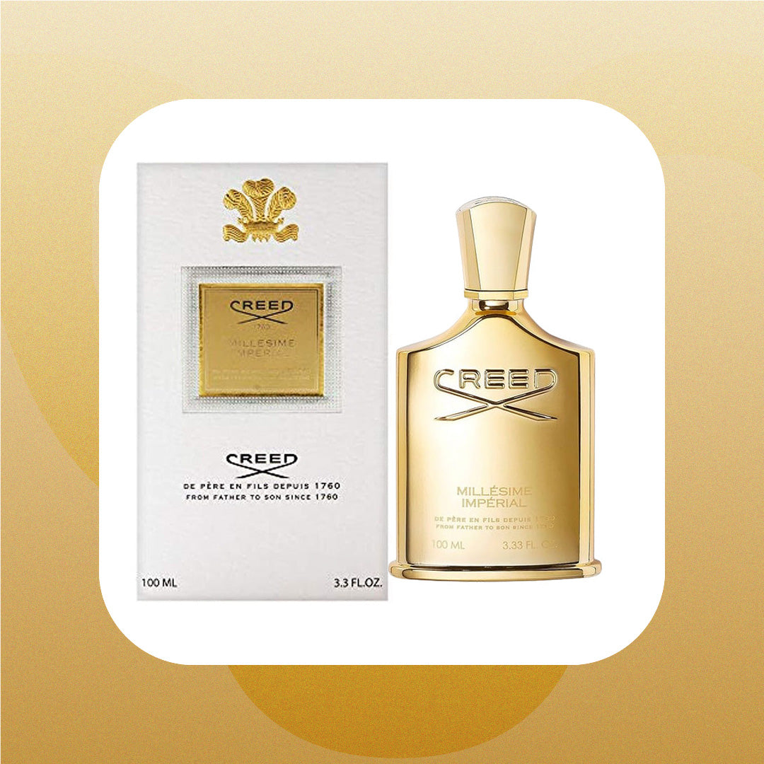 The bottle design of Millesime Imperial reflects the classic and sophisticated aesthetic of Creed. It features a simple yet elegant flacon with a gold cap and the Creed logo, representing the brand's commitment to quality and craftsmanship.