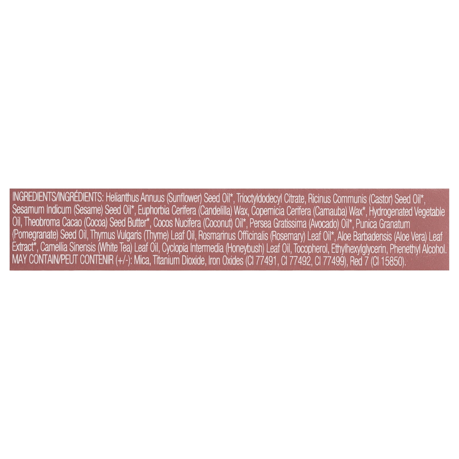• Ingredients include sunflower seed oil and cocoa seed butter