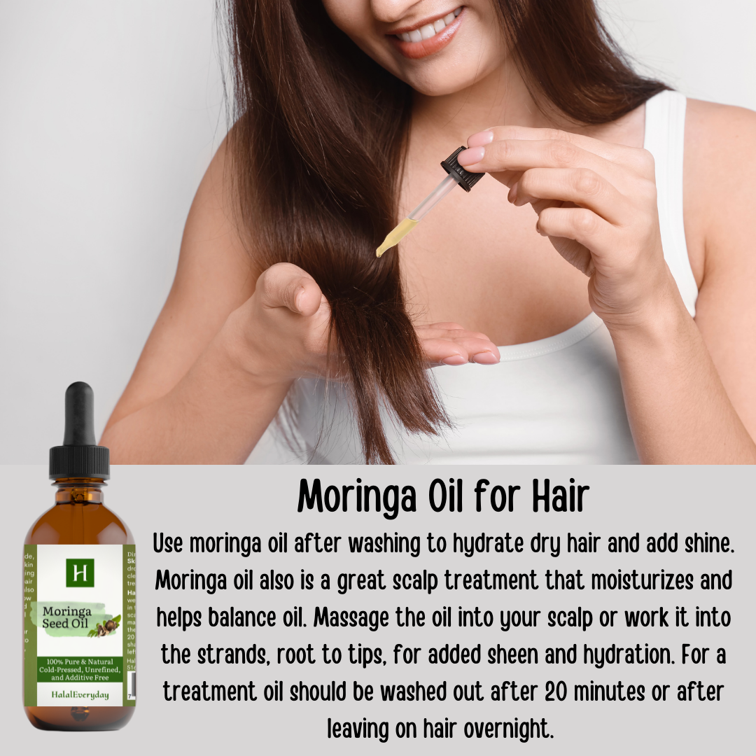Moringa oil has been know to help with natural hair growth due to the high content of key nutrients such as vitamins A/B/E and zinc.