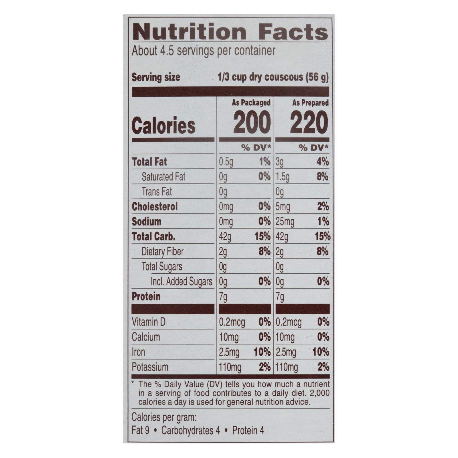 Discover the simplicity and versatility of this couscous mix, a staple for any kitchen pantry. Perfectly crafted from durum wheat semolina, this GMO-free and kosher couscous offers a quick and nutritious meal option. In just five minutes, you can prepare a light and fluffy side dish that pairs well with a variety of meals. Each pack contains 10 oz. of couscous, and with this case of 12, you're well-stocked for family dinners or meal prep for the week.