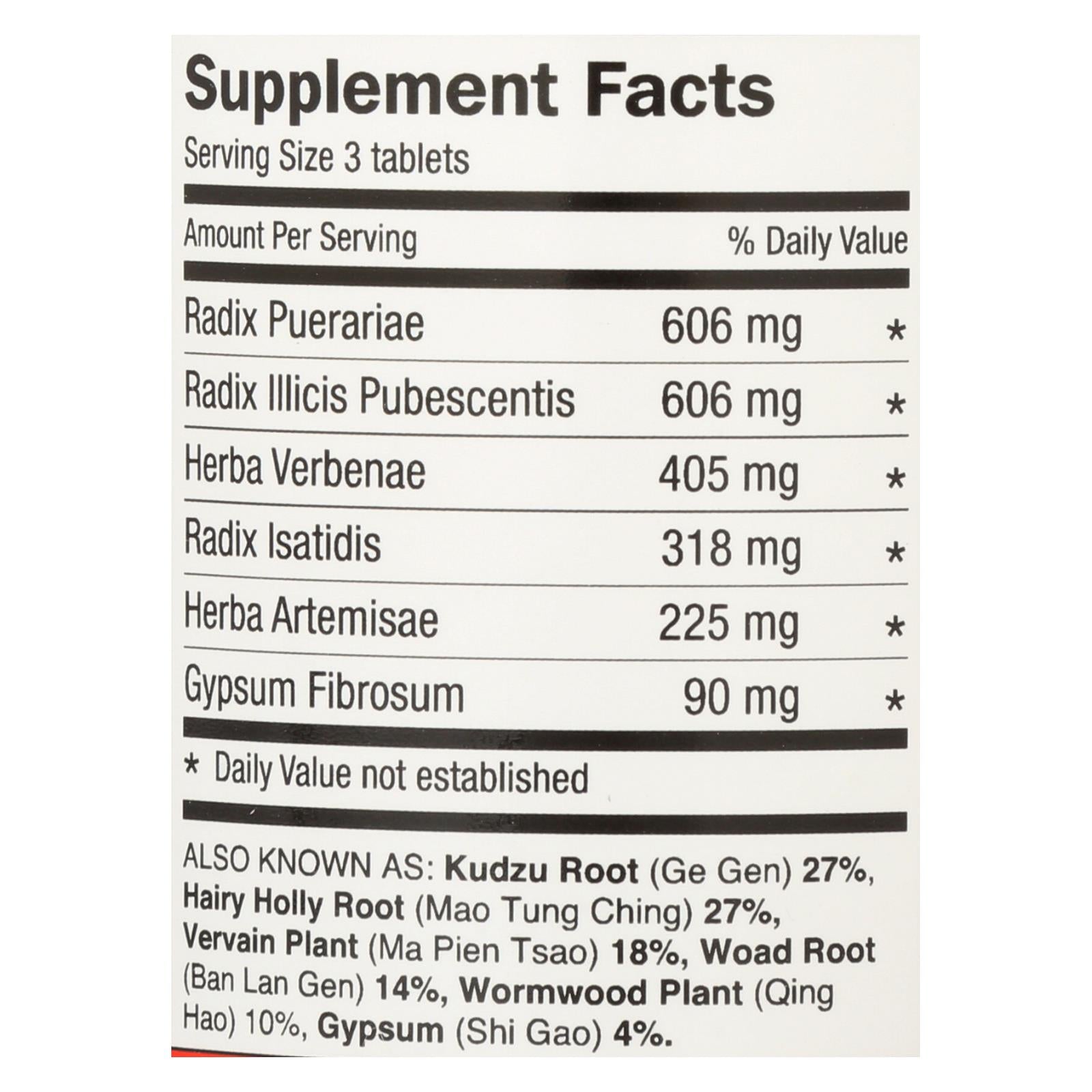 Combat severe flu symptoms with a blend of traditional Chinese herbal ingredients designed to support your body's natural defenses. This premium herbal supplement features a potent mix of kudzu root, hairy holly root, vervian, woad root, wormwood, and gypsum, known for their ability to alleviate cold symptoms and respiratory issues. The formula works by helping to release excess heat from the body and relax tense muscles, promoting overall well-being and comfort.