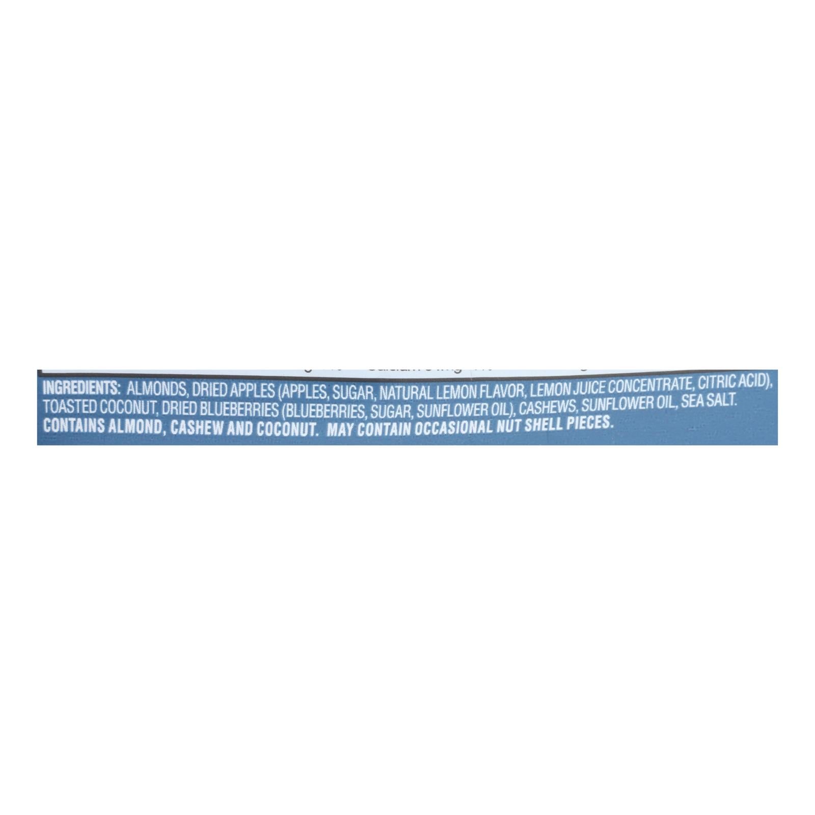 • Contains almonds, cashews, toasted coconut, dried blueberries, and apples