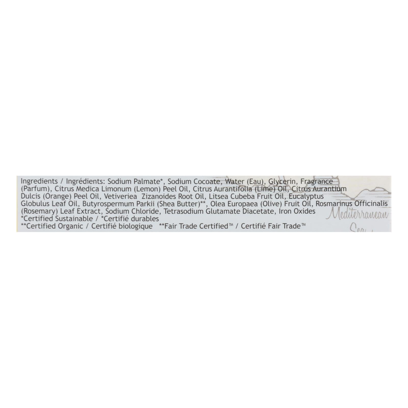 Delight in the soothing freshness of a coastal breeze with this exquisitely crafted soap. This oval bar, weighing in at 6 oz, is enriched with organic shea butter and natural glycerin, ensuring your skin is left soft and deeply moisturized. Crafted in the Marseille tradition, it offers a creamy, luxurious lather infused with the invigorating aroma of lemon verbena, a blend of citrus and herbaceous notes.